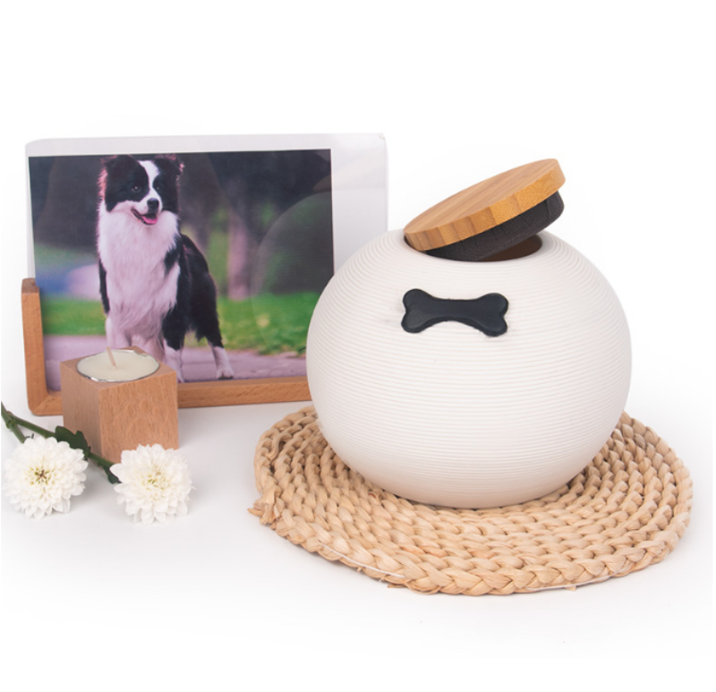 1000 ml keraamiline urn sobib keskmise ja suure suurusega koera tuha jaoks. Kaas on valmistatud bambusest.