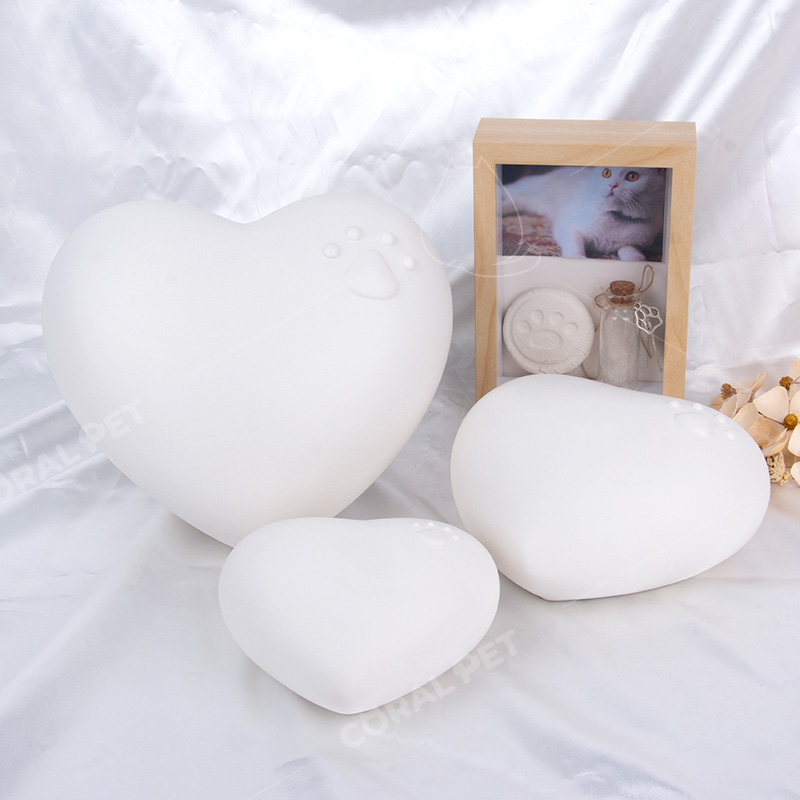 Keraamiline südamekujuline urn sobib väikse suurusega koera või kassi tuha jaoks. Väga ilus ja õrn urni kuju.