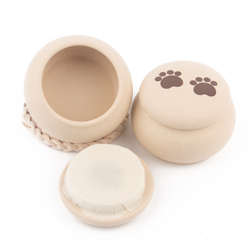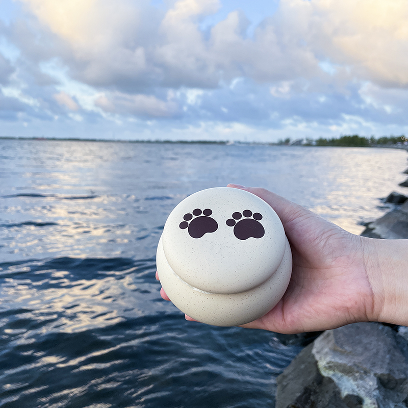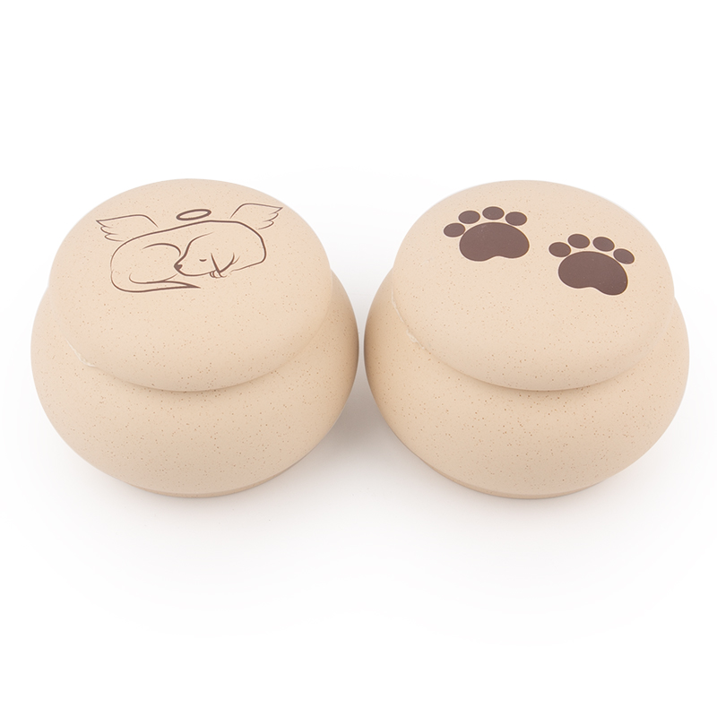 Väike keraamiline urn sobib väikese suurusega koera tuha jaoks. Minimalistlik disain, väga ilus beež värv.